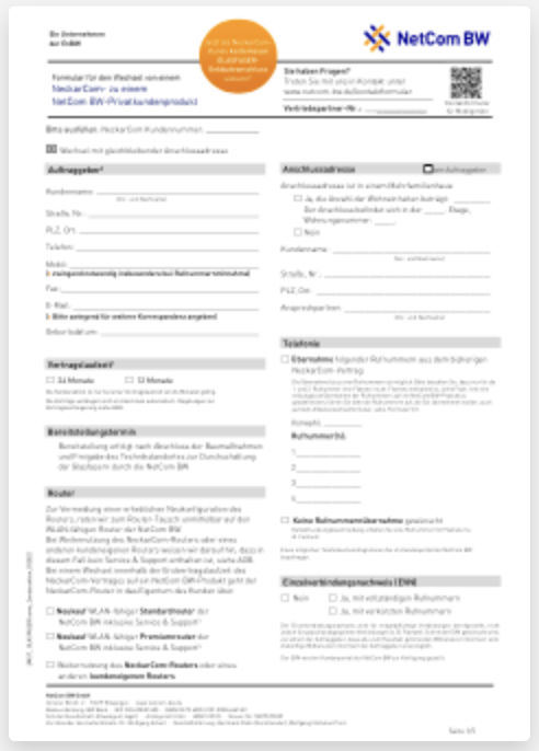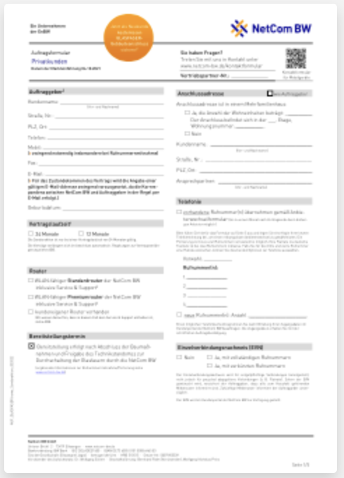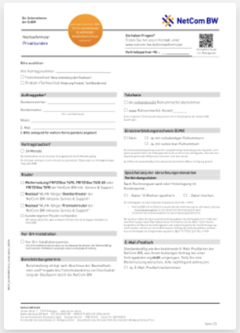 NetCom BW - Auftrag erfassen